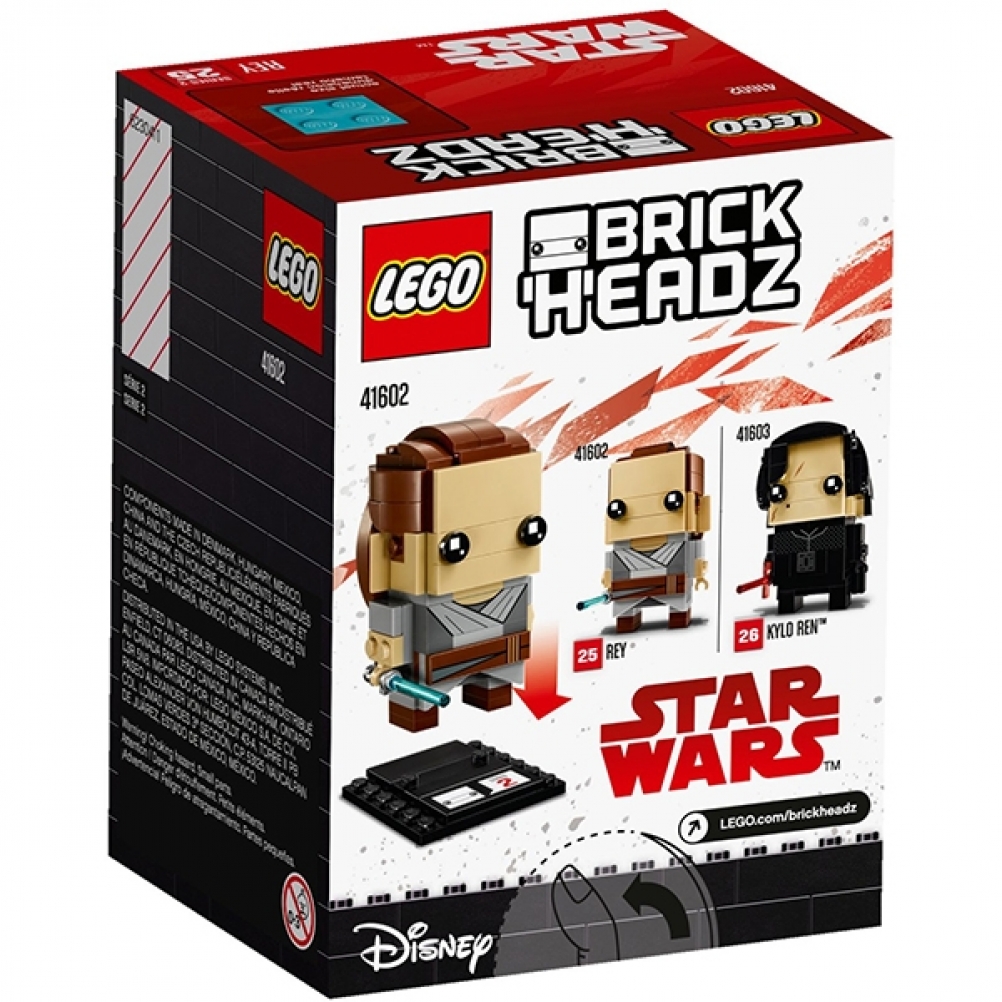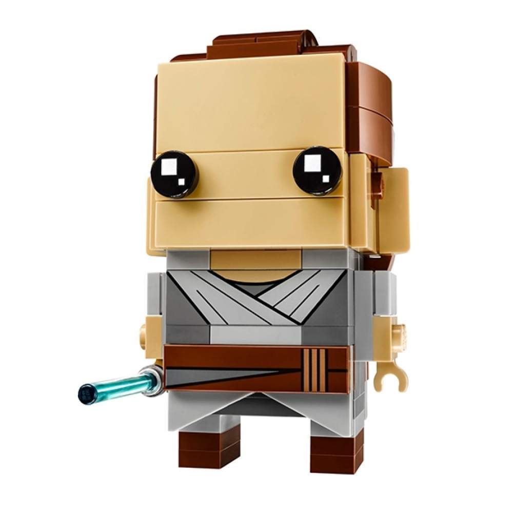 Personaggio costruibile di Rey LEGO® BrickHeadz, con gli autentici dettagli del film di grande successo Star Wars: Gli ultimi Jedi, incluso il famoso costume e la spada laser staccabile.