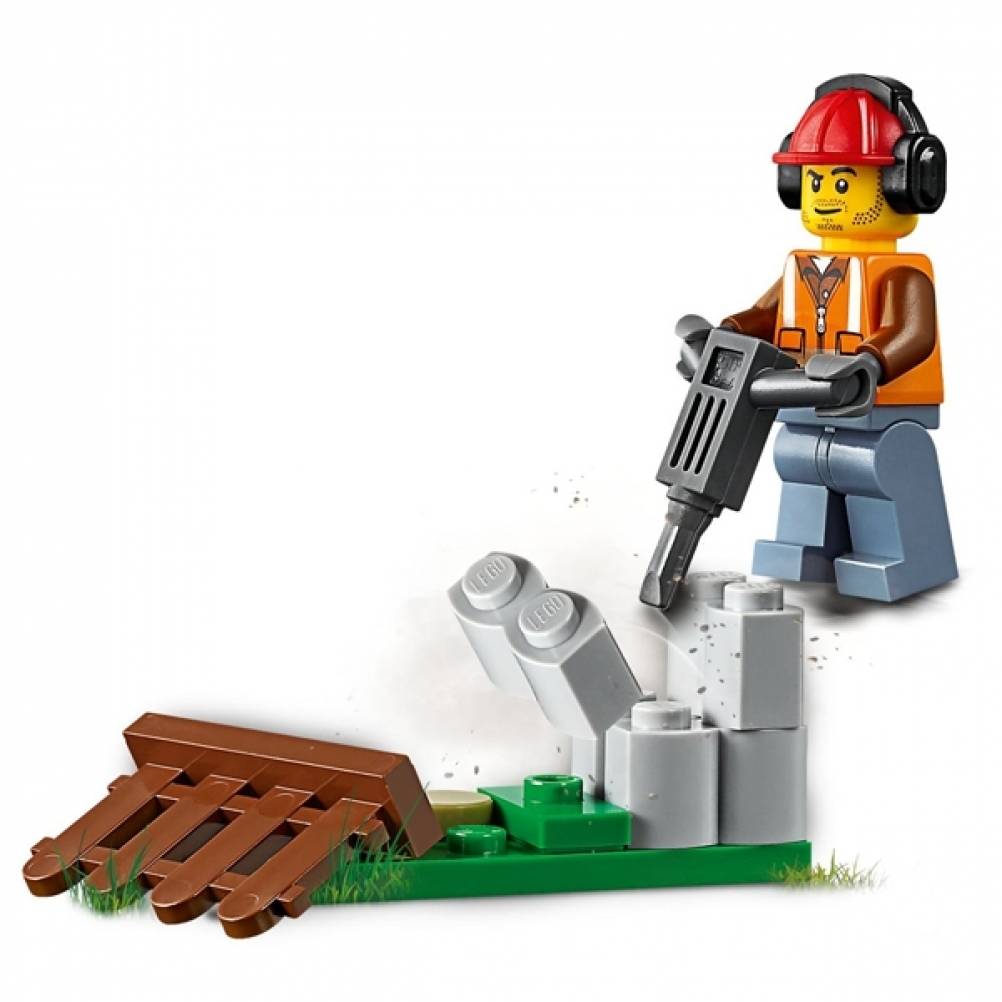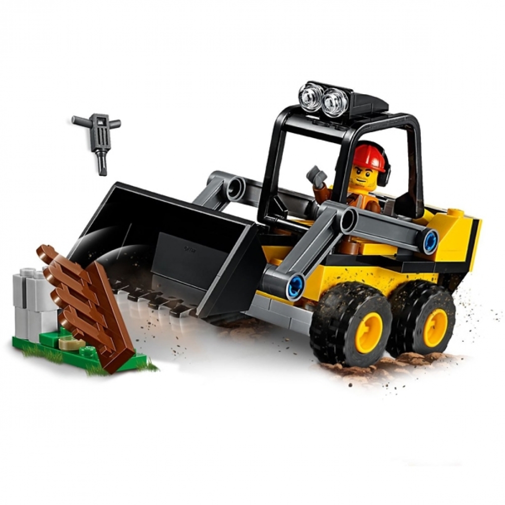 Questo iconico set costruibile contiene una ruspa con braccio anteriore sollevabile e pala inclinabile e gabbia di sicurezza, più una piccola staccionata, un martello pneumatico, una pila di cemento costruibile e una minifigure.