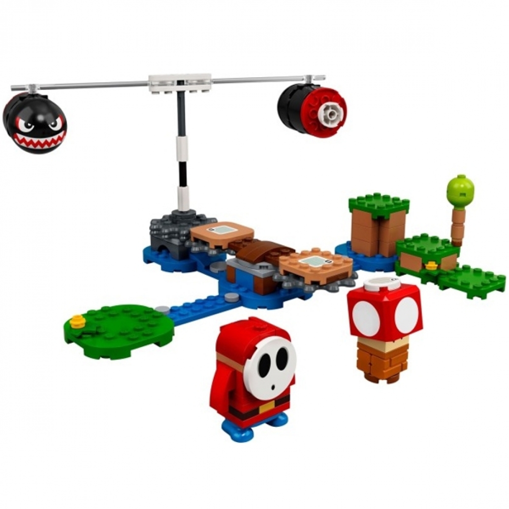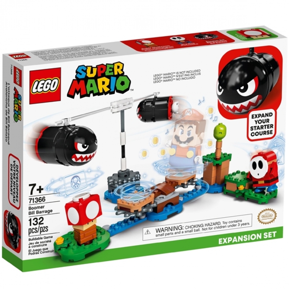 Questo set giocattolo esclusivo è caratterizzato da una piattaforma rotante per LEGO® Mario™ (personaggio non incluso), una trottola con 2 personaggi Pallottoloni Bill “volanti”, un Tipo Timido e un super fungo per potenziare il gameplay.