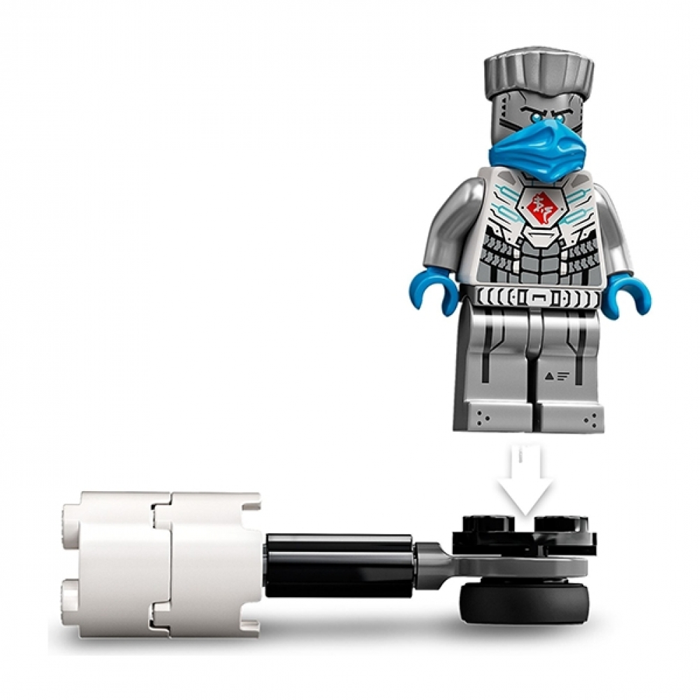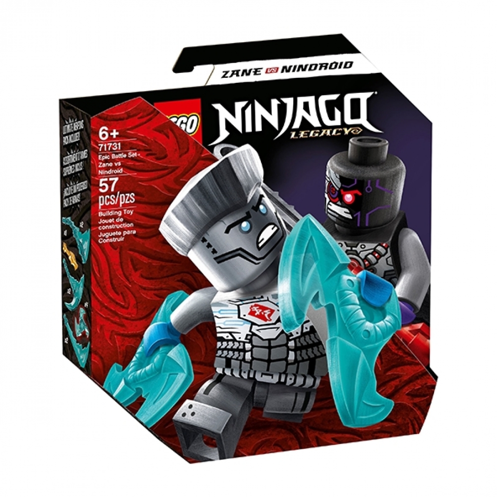Il set di gioco del ninja include 2 minifigure: uno Zane, novità di gennaio 2021, e un Nindroid dell'Eredità della serie TV NINJAGO® e 4 armi bianche esclusive.