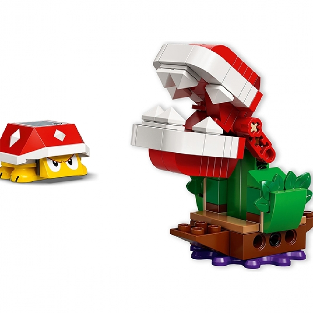 Contiene 2 Piante Piranha e una figura spinosa per LEGO® Mario ™ (personaggio non incluso) da sconfiggere e una giostra rotante per buttare via le Piante Piranha e raggiungere 3 blocchi di monete rosse che offrono grandi premi in monete digitali. (Nota: per il gioco interattivo è necessario il set del corso iniziale 71360.)