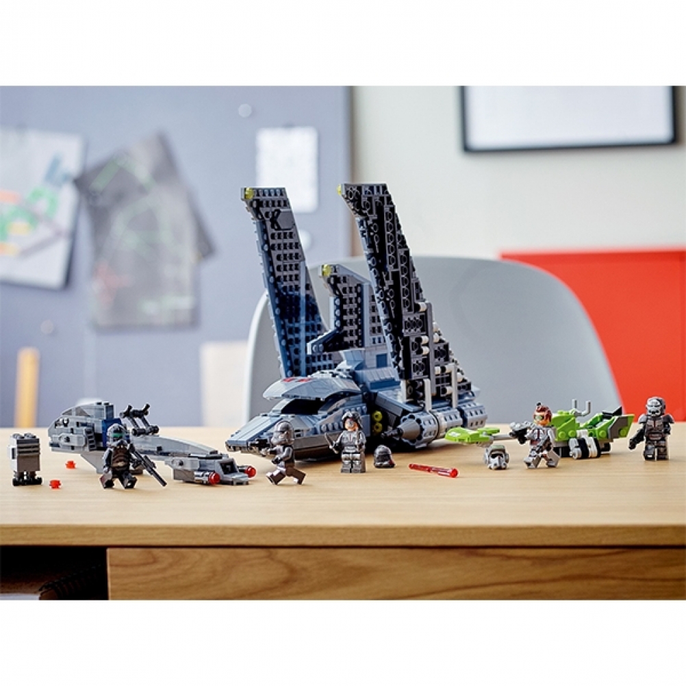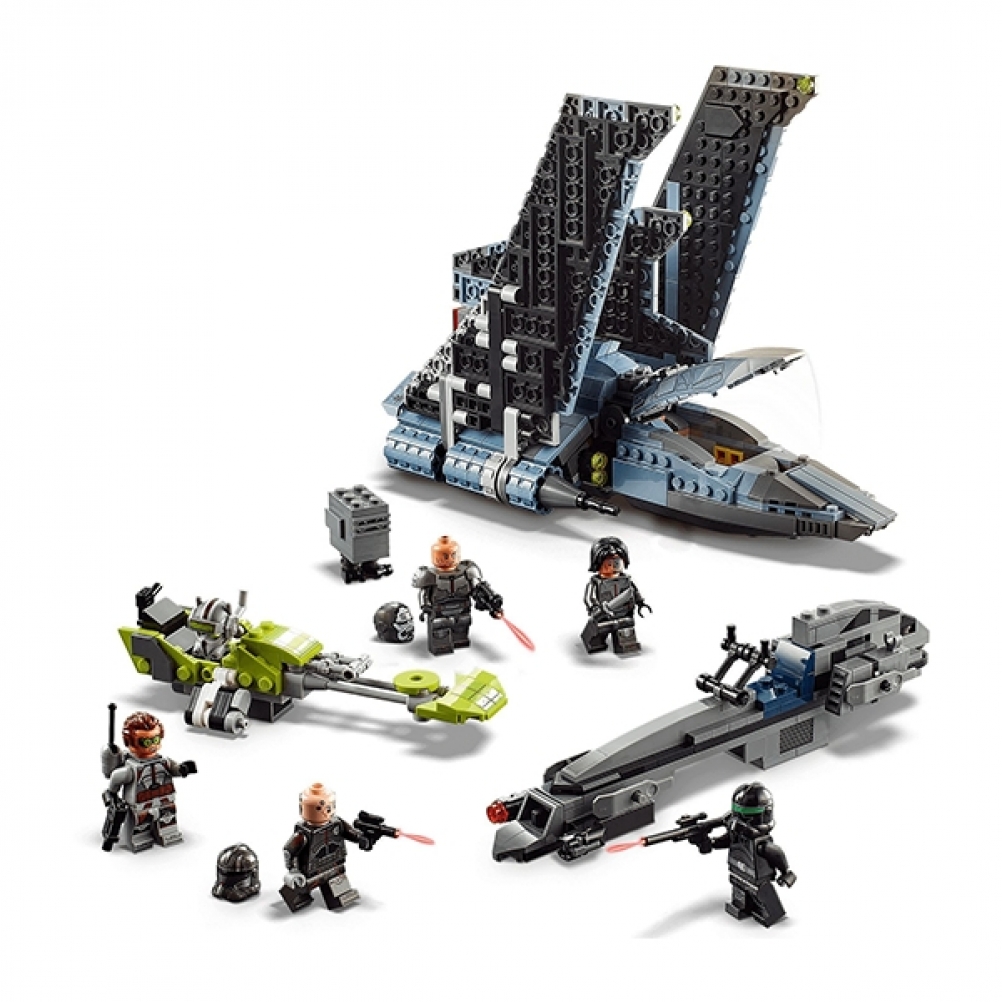 Lo Shuttle di attacco The Bad Batch misura 20 cm di altezza, 25 cm di lunghezza e 13 cm di larghezza con le ali ripiegate ed è magnifico da ammirare quando viene esposto tra un’avventura e l’altra. Il set si compone di 969 pezzi.