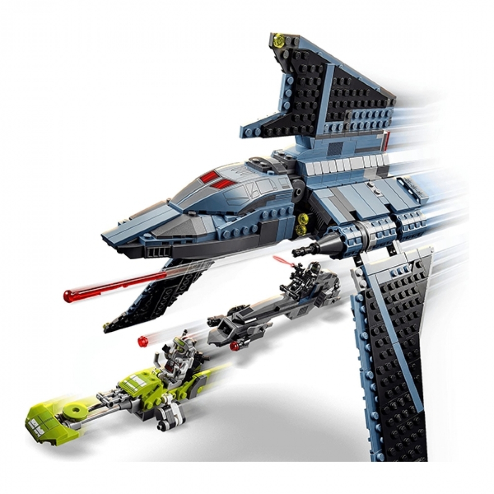 La cabina ha spazio per 2 minifigure e per riporre le armi. Il set include anche uno speeder con 2 shooter e un altro speeder cui è possibile agganciare un blaster per aumentare le possibilità di gioco.