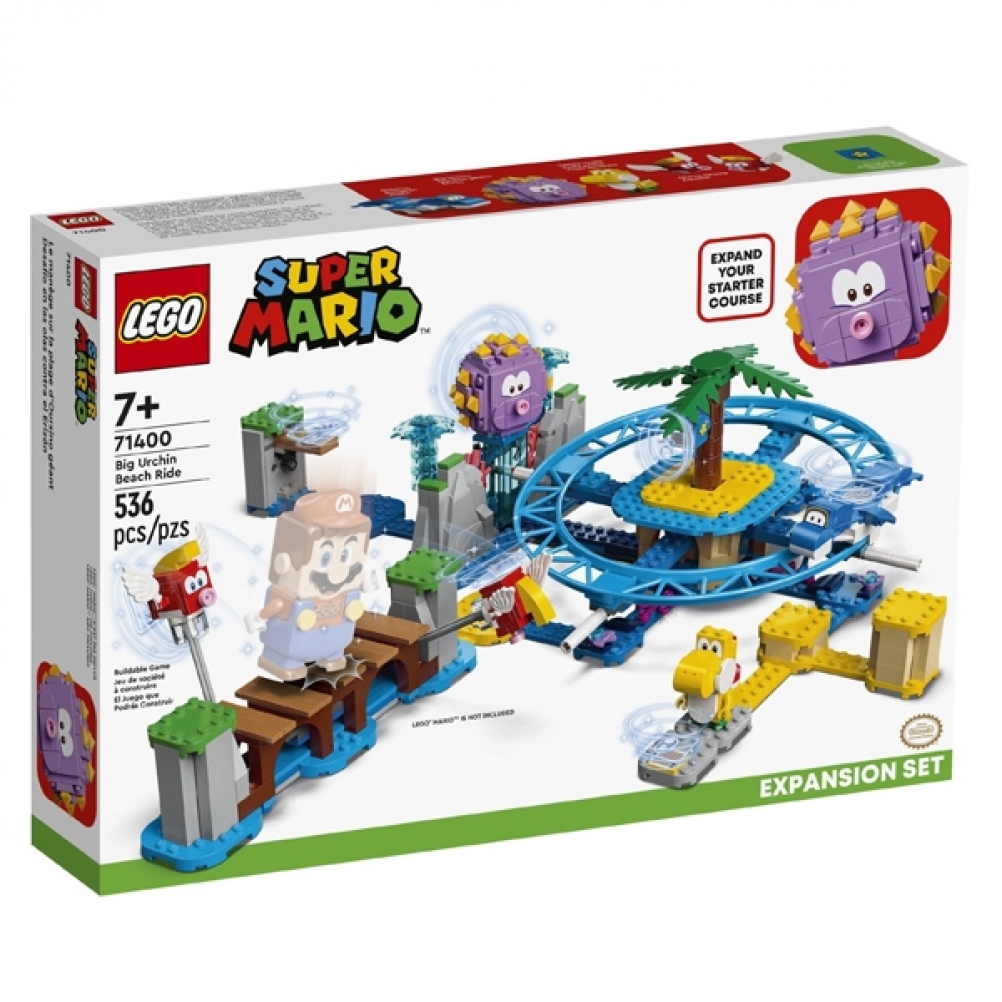 LEGO® Super Mario™ Spiaggia del Ricciospino gigante - Pack di Espansione (71400) permette ai bambini dai 7 anni in su di creare un livello ricco di azione.