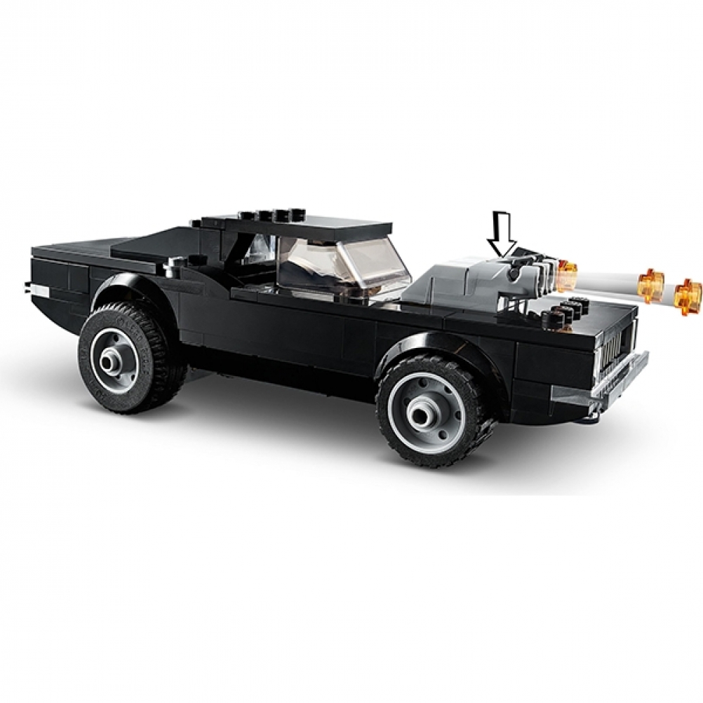 Grazie all’elemento extra fornito, i bambini possono rimuovere le fiamme dall’auto di Ghost Rider e trasformarla in un’elegante muscle car nera.