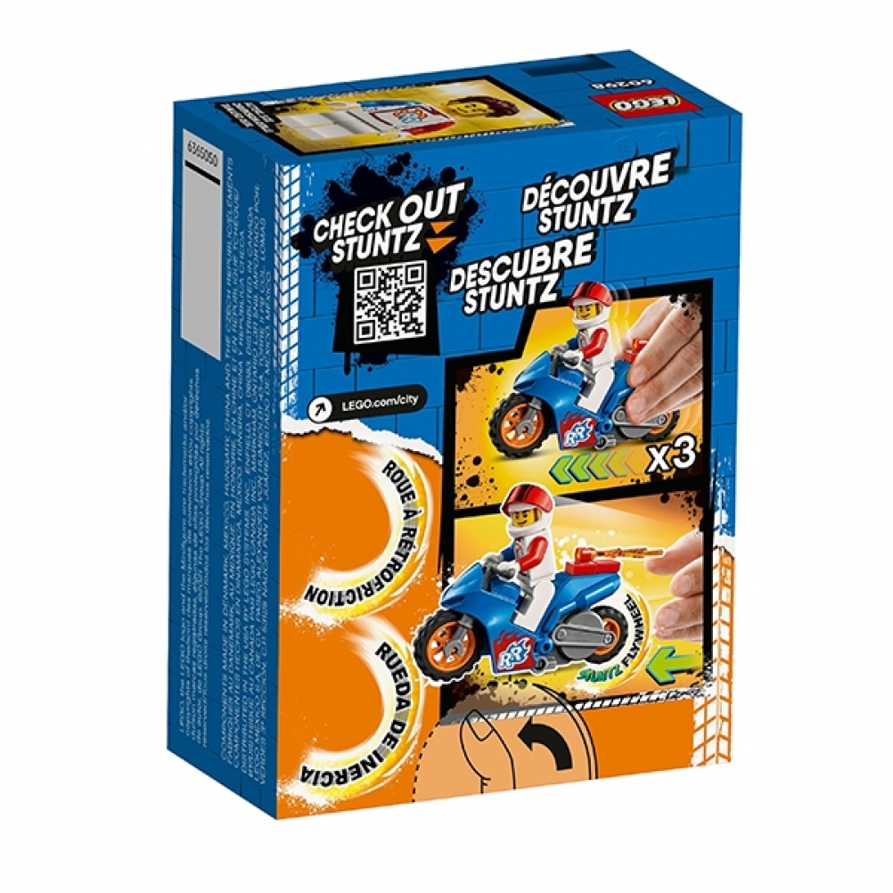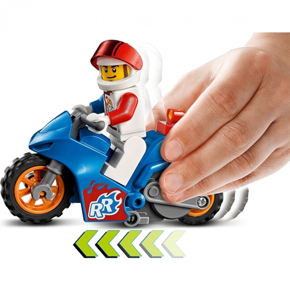 Vola verso l’alto con il playset giocattolo Stunt Bike razzo LEGO® City (60298) dotato di funzione “carica e vai”, caratterizzato da una moto acrobatica e da Rocket Racer, il personaggio della serie TV LEGO City Adventures che sfida le altezze, una combinazione perfetta per uno show acrobatico spettacolare.