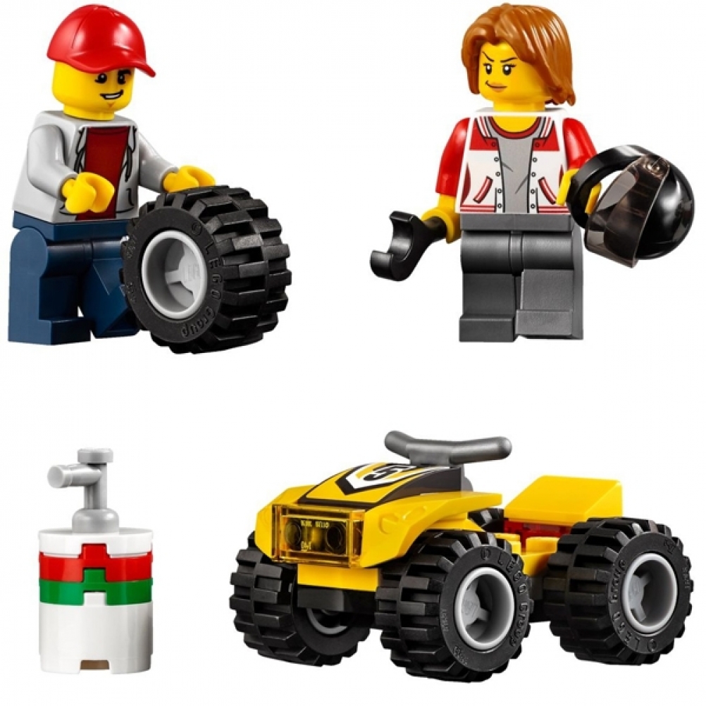 Preparati per la gara con il Team corse del fuoristrada LEGO® City. Questo set contiene due fuoristrada, un pick-up, gancio per il rimorchio, pianale del pick-up con rampa regolabile e un rimorchio staccabile con rampa regolabile, oltre a caschi, contenitore di carburante e una ruota di scorta. Include due minifigure.