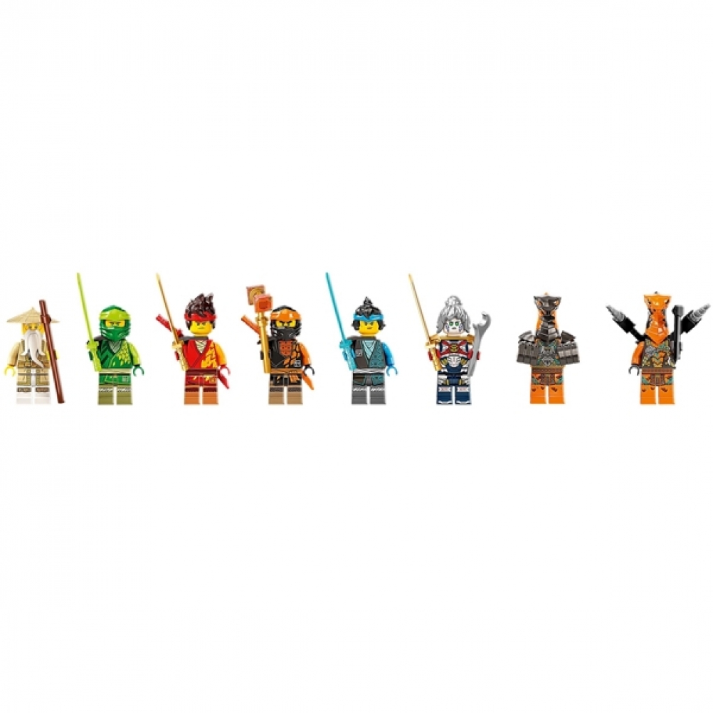 - 8 minifigure: il set di costruzione include Maestro Wu, Cole, Kai, Lloyd, Nya e Pixal, oltre ai serpenti Boa distruttore e Cobra meccanico con rispettivo veicolo-ariete per ricreare scontri in battaglia