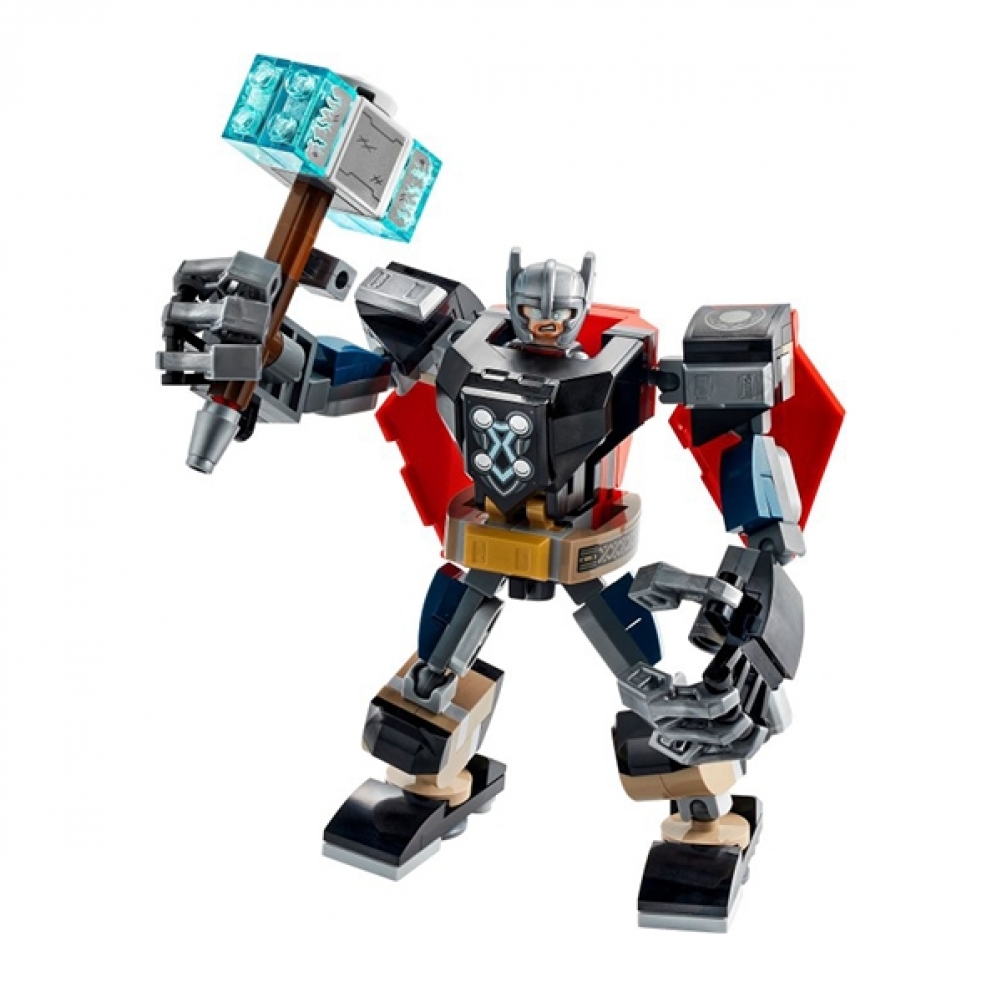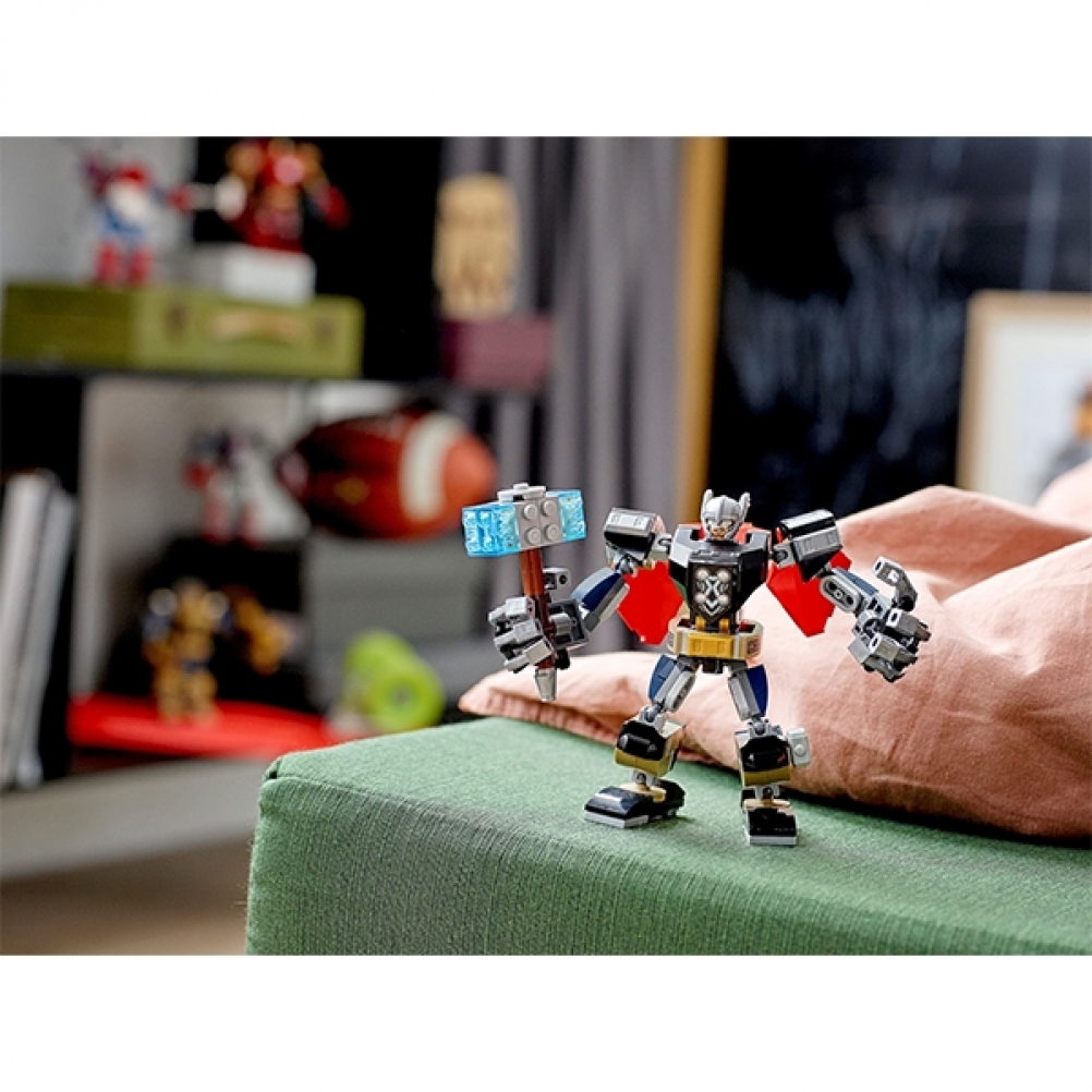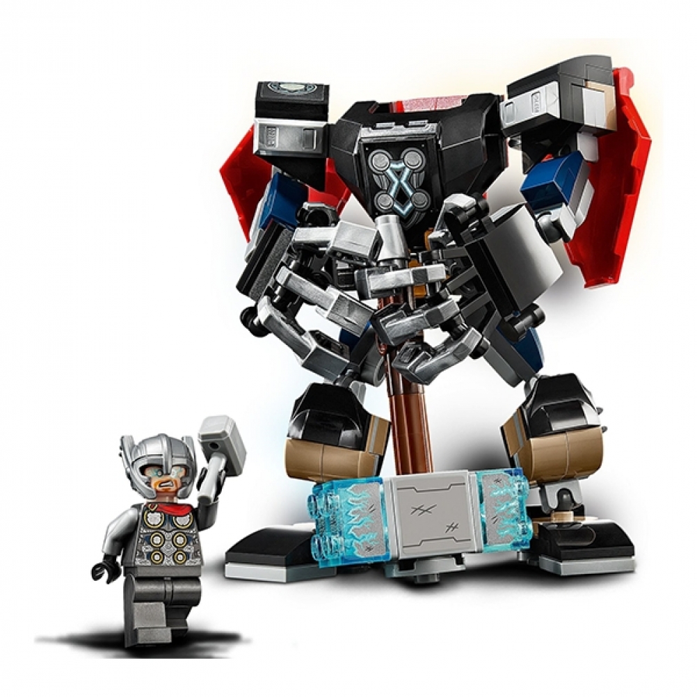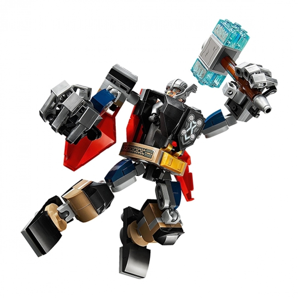 della Marvel.I bambini usano la minifigure di Thor per affrontare i nemici, con l'aiuto del suo mistico martello, quindi sovradimensionano il potente guerriero mettendolo nella cabina di pilotaggio del mech gigante. Il mech ha braccia e gambe mobili e un martello gigante stretto nelle sue potenti mani, quindi i fan di Marvel Avengers possono usarlo per ricreare le scene dei film preferiti e avere battaglie epiche con altri mech nella loro collezione.