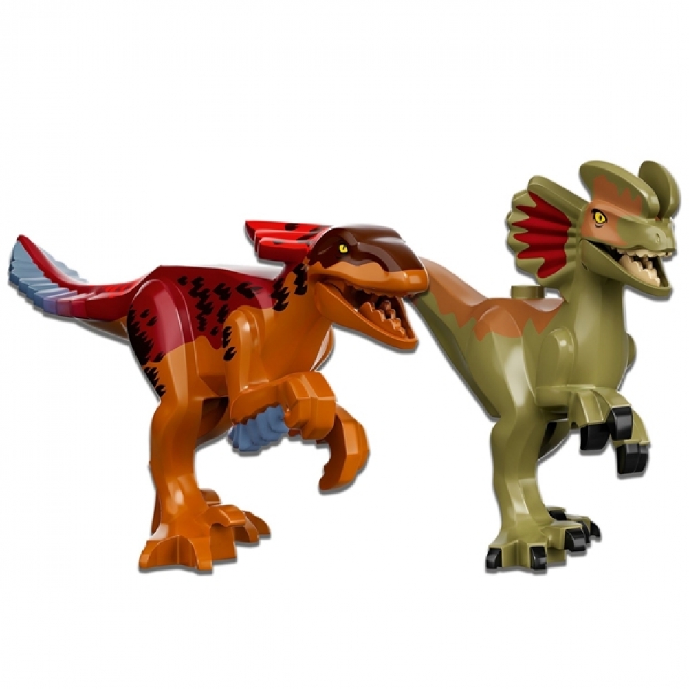 Ci sono anche 3 minifigure LEGO®, Ian Malcolm, Dott. Ellie Sattler e una guardia con tranquillante, più i dinosauri Piroraptor e Dilofosauro per ispirare lo storytelling creativo.
