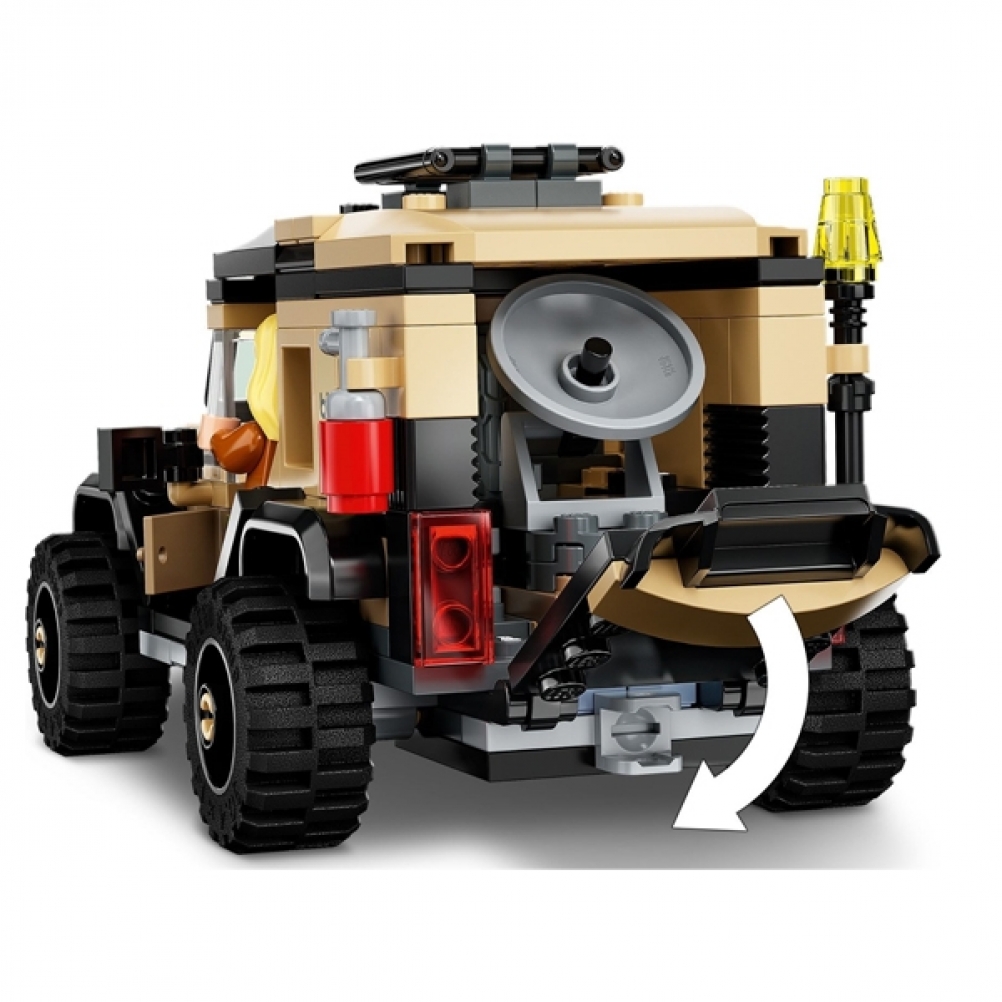 Il fuoristrada ha posto per 2 minifigure, è dotato di un localizzatore di dinosauri rimovibile e di una gabbia apribile che può contenere un dinosauro.