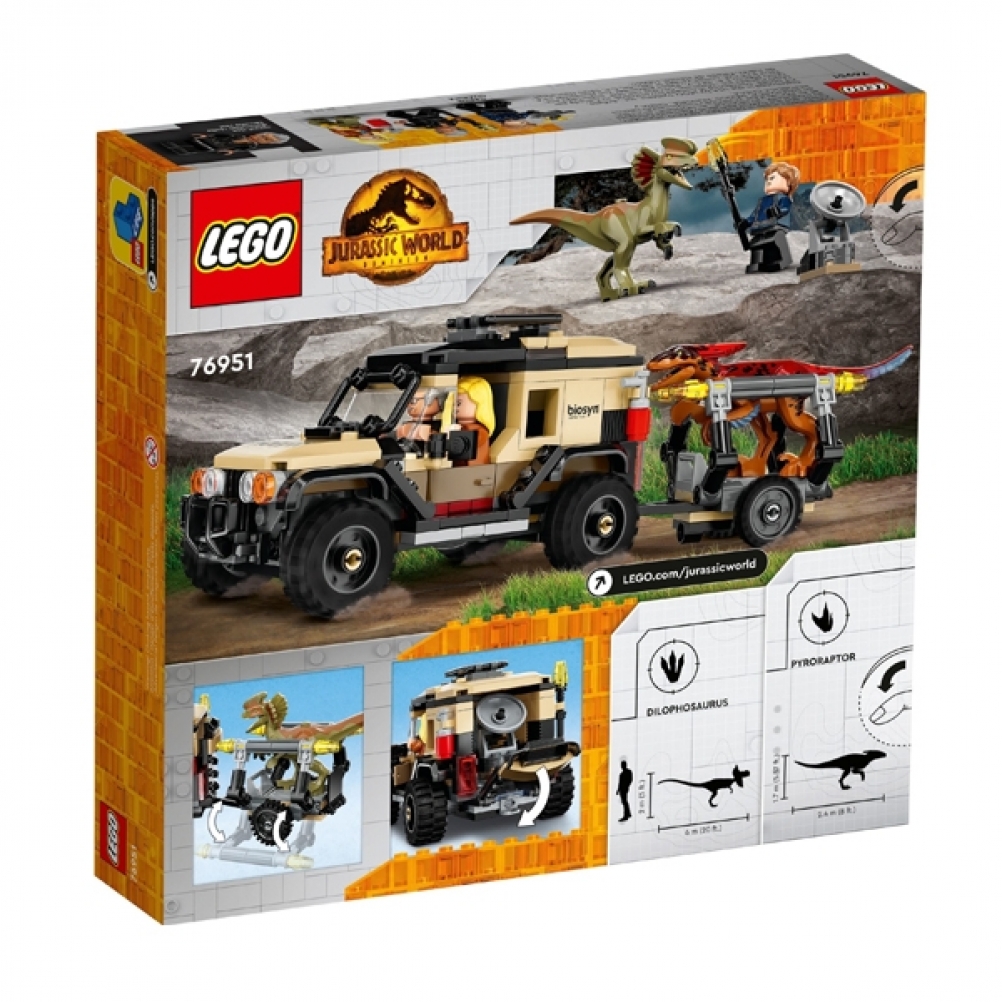 - Veicolo fuoristrada e 2 dinosauri giocattolo: divertenti avventure ricche di azione aspettano gli intrepidi cacciatori di dinosauri con questo playset Trasporto del Piroraptor e del Dilofosauro (76951)