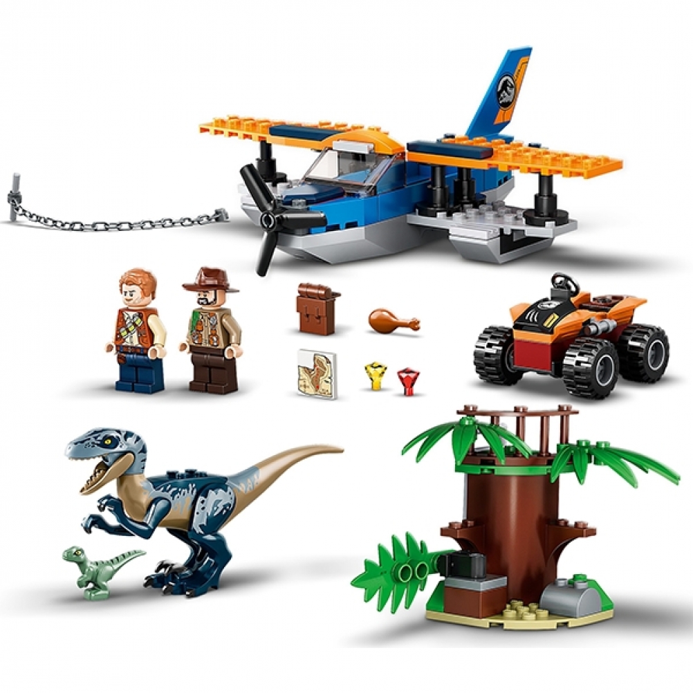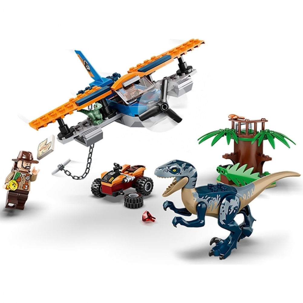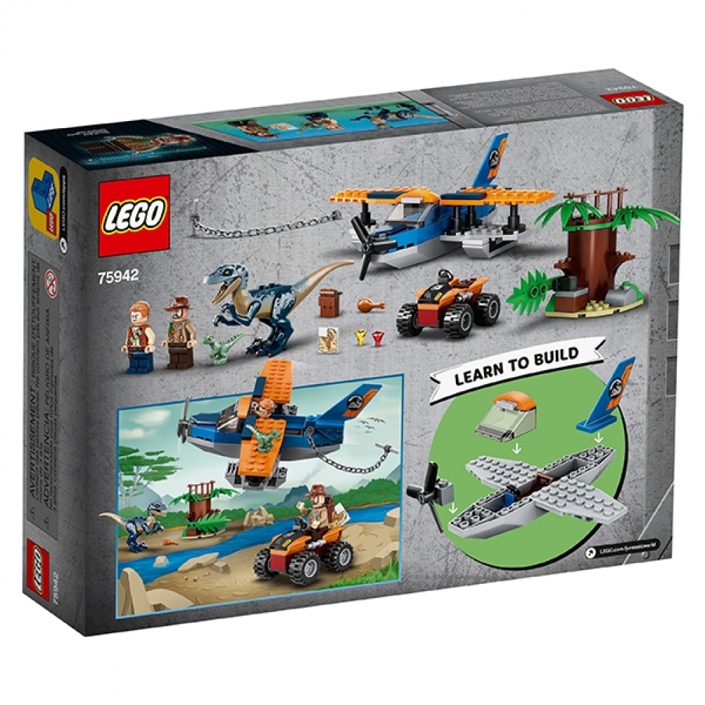 Include un Velociraptor snodabile, un avamposto di osservazione sulla cima degli alberi, un nido di dinosauri per Delta, il piccolo Velociraptor, più elementi accessori come una mappa del tesoro, un uovo di dinosauro e 2 diamanti per il gioco creativo.