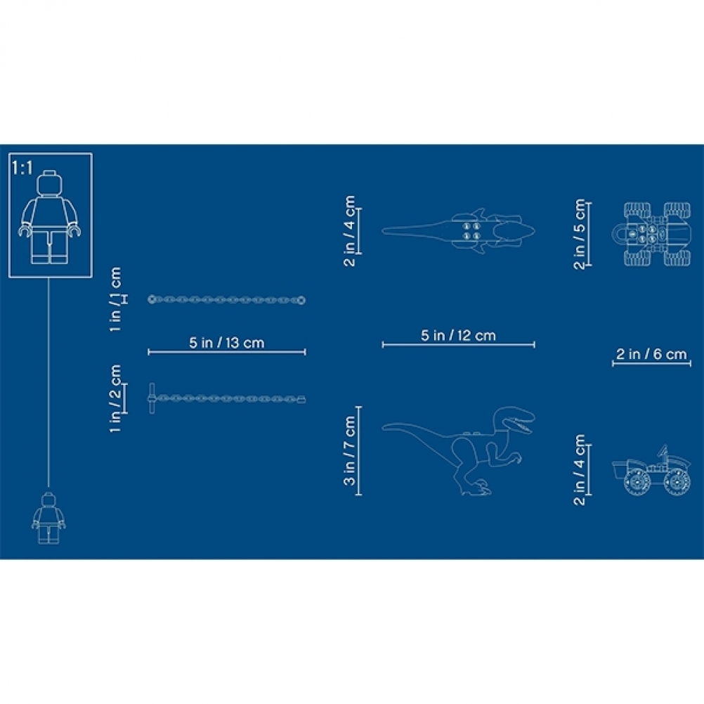 Il biplano misura 6 cm di altezza, 18 cm di lunghezza e 16 cm di larghezza, quindi si adatta facilmente a una borsa con le altre costruzioni, i rapaci e i personaggi LEGO® Jurassic World per intrattenere i bambini i loro viaggi.