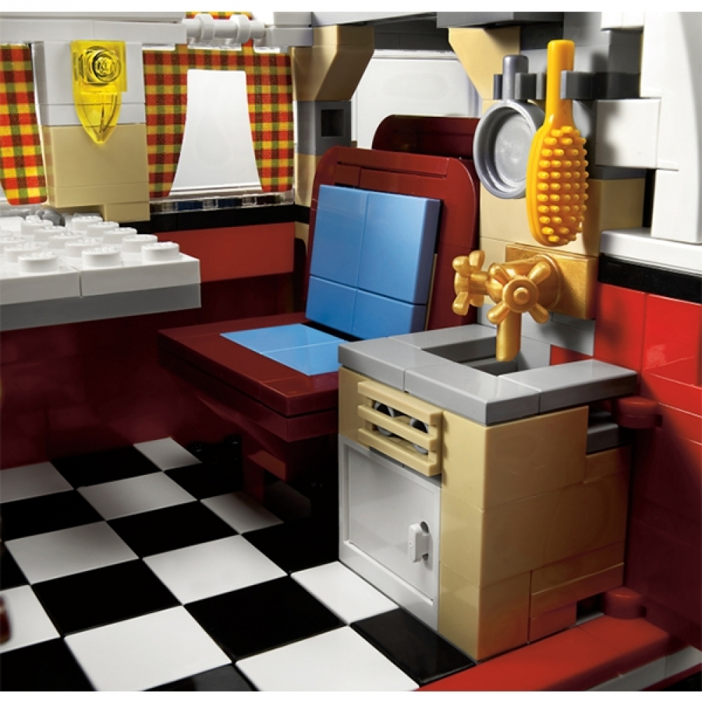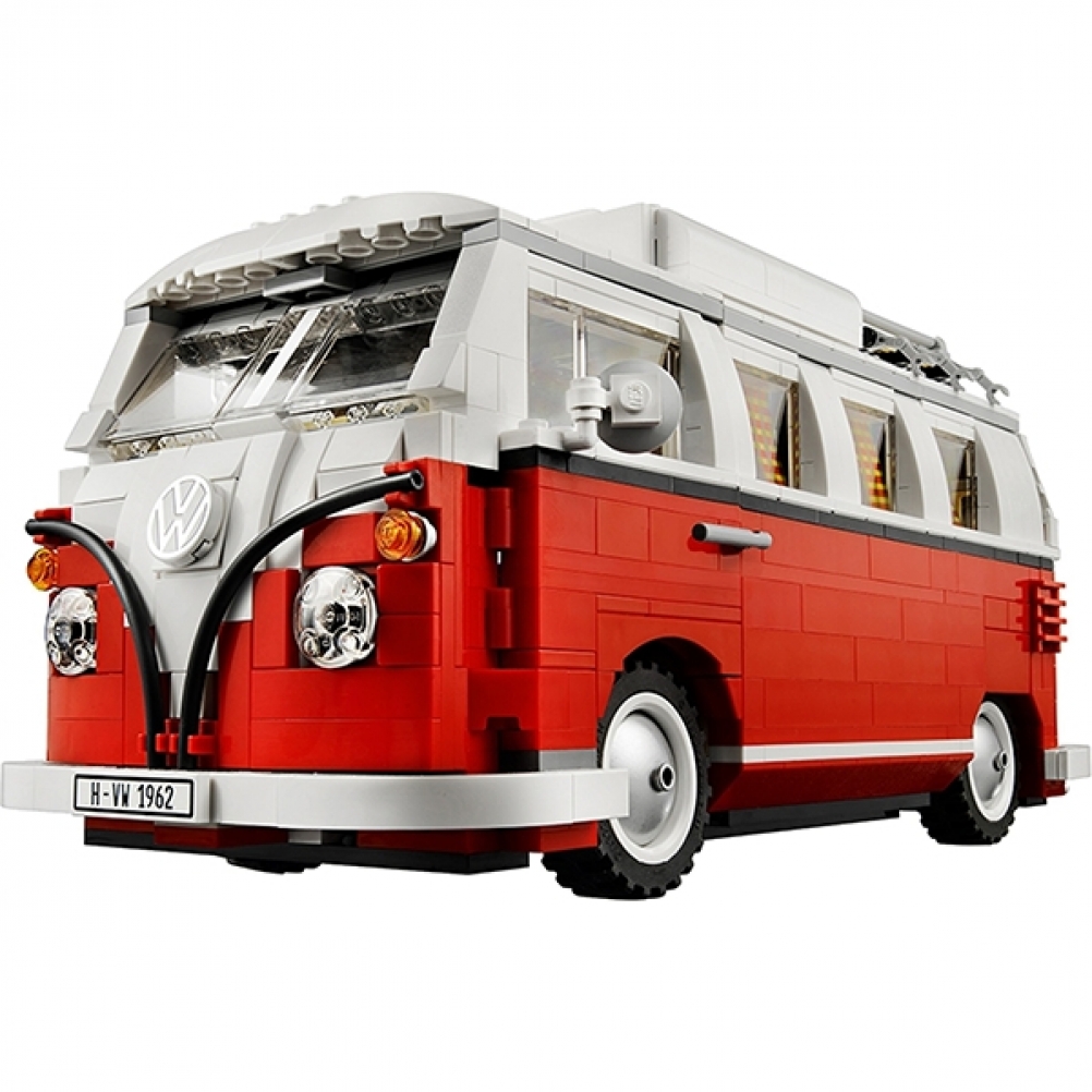 All'esterno, i fantastici dettagli includono la divisione dei colori a tre vie a forma di 'V' nella parte anteriore, tetto e infissi arrotondati, parabrezza safari 'splittie' apribile, porte apribili, tetto a scomparsa iconico con cornice per tende in tessuto, portapacchi, prese d'aria laterali posteriori e molto altro ancora! I dettagli sono ugualmente impressionanti all'interno, dall'autentico motore boxer a quattro cilindri piatto raffreddato ad aria VW, panca anteriore della cabina, leva del cambio, cruscotto angolato e iconico tachimetro sferico, a caratteristiche LEGO® personalizzate come sedile posteriore pieghevole e dinette pieghevole tavolo, armadio con specchio e persino un dipinto!