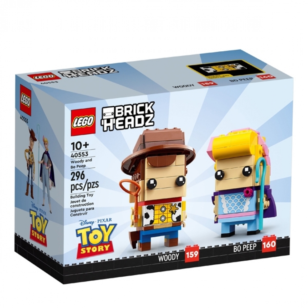 - Personaggi Disney in stile LEGO® BrickHeadz: i personaggi costruibili LEGO BrickHeadz di Woody e Bo Peep Disney e Pixar (40553) con gli stessi outfit dei film e dettagli riconoscibili